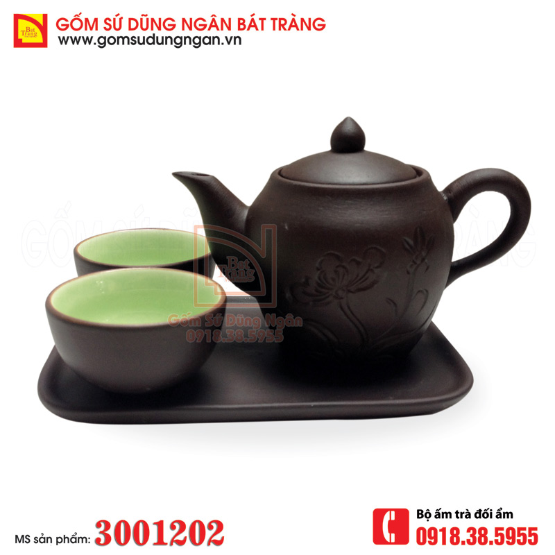 Bộ ấm trà đối ẩm gốm tử sa Bát Tràng thuộc dòng bộ ấm trà mini, bộ ấm trà dung tích nhỏ. Do được thiết kế dành cho 2 người nên bộ ấm trà có tên gọi "Đối ẩm" , "Nhị ẩm" hoặc "Song ẩm". Ấm trà nhỏ, dùng cho các loại trà ngon, phục vụ nhu cầu uống trà ít người. Mỗi bộ ấm trà gồm 1 ấm trà, 2 chén uống trà và 1 khay sứ nhỏ. Sản phẩm được cung cấp bởi Gốm sứ Dũng Ngân Bát Tràng.