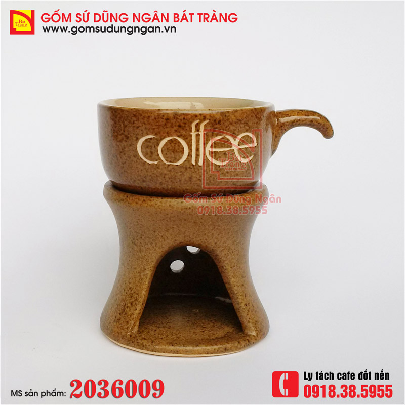 Ly tách cafe đốt nến gốm sứ Bát Tràng cao cấp chất liệu men gốm lòng tráng men thủy tinh. Bếp đun cafe đẹp, thân cốc khắc chữ Coffee. Mỗi bộ Tách cafe đốt nến gồm 1 tách sứ và 1 bếp sứ. Sản phẩm có nguồn gốc xuất xứ Bát Tràng và được cung cấp bởi gốm sứ Dũng Ngân Bát Tràng.