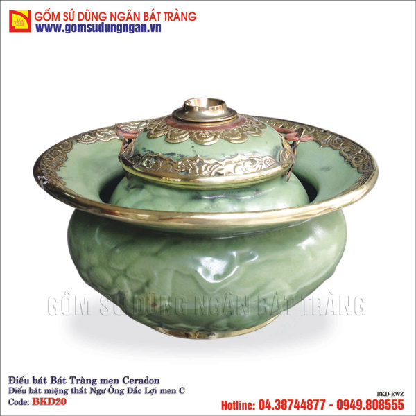 Điếu bát Bát Tràng men ngọc cổ bọc đồng